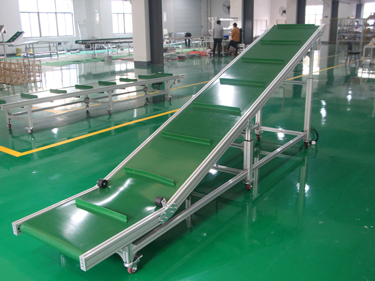 爬坡輸送機的輸送傾角大,最大可達90°,是大傾角輸送和垂直提升的理想設備。因此可以節(jié)約占地面積,節(jié)省設備投資和土建費用,取得良好的綜合經濟效益。